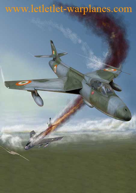 Few decades ago bitter fight was happen over the South Asia sky and opposed sides was India and Pakistan. Art bellow captured one moment in this war and this is battle happen over Dacca on 4 December 1971, when the India’s pilot Harish Masand had down Pakistan F-86 Sabre piloted by Saeed Afzal Khan. Masand piloted one of the India Hunter and his unit was “Black Panther”.