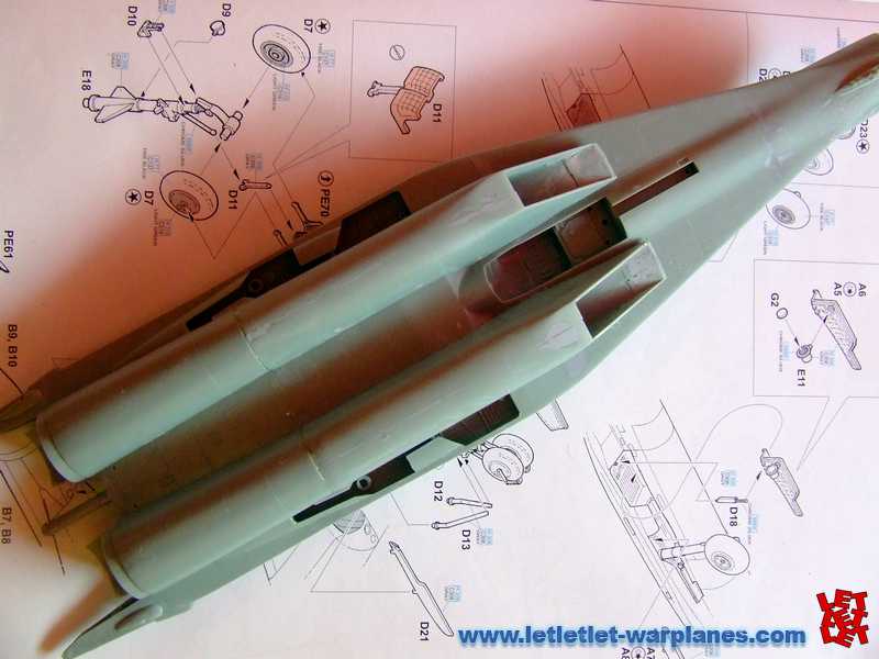 Cockpit look marvelous with all of the Eduard additions of resin and etched parts and I am sure that most of you would like to left it with open canopy. To regret in basic kit Eduard forget to add one of important upgrade, new exhaust, as well original is out of mind to be used due to incorrect shape. So you will need to buy separate exhaust for MiG-29 released by Eduard in December 2011. Some parts I would recommend not to use and this is etched parts number 78. On the real airplane this present three small pipes mounted on vertical fin bottom and Eduard part is flat. So better use original kit parts or make new from small tubes. Also I will recommend to check out for the tail details as well there is variation in antennas used on fin’s.