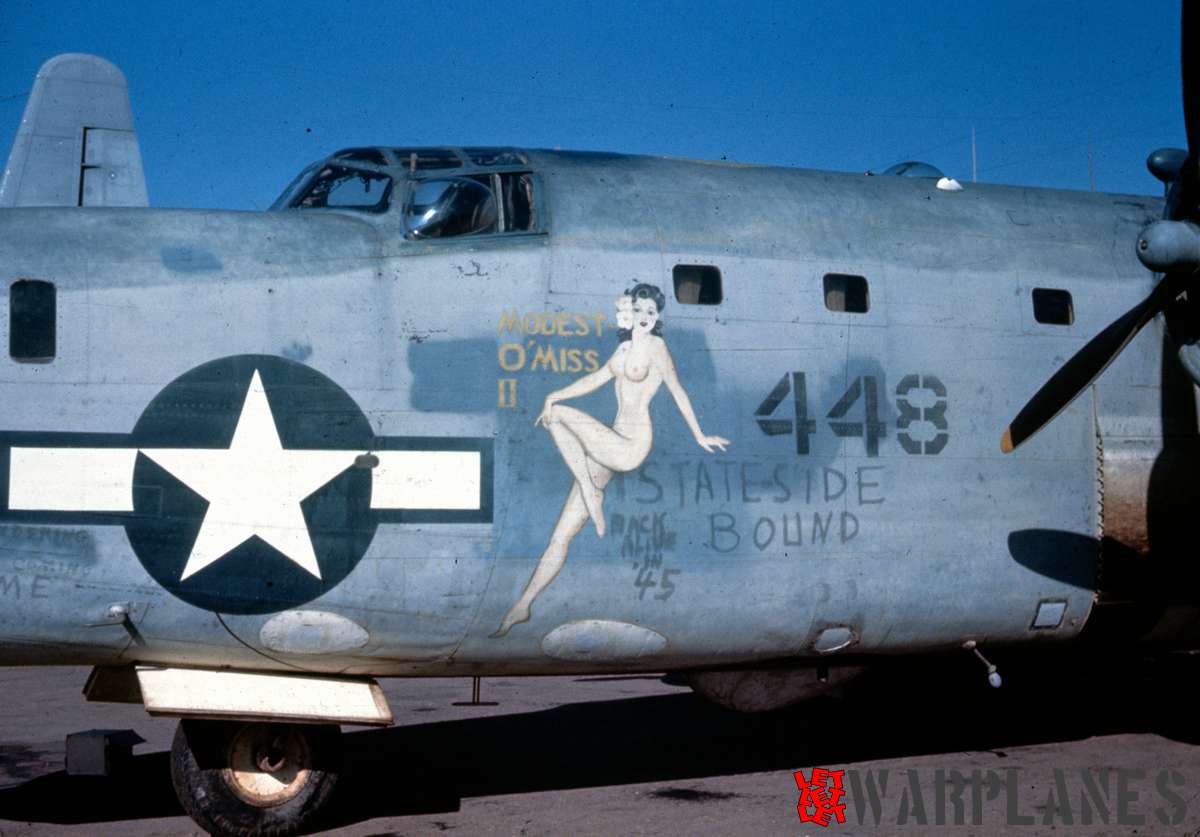 On top of fuselage was two Martin turrets, 250CE-16 was front and the 250CE-17 was rear turret, the first was located behind the cabin and the second in front of the vertical tail. In the nose was installed ball turret ERCO 250SH-3, in the tail Motor Products 250CH-6 turret. The flexible gunner of the Liberator were replaced by drop-shaped blisters, inside which were a pair of 12.7 mm machine guns. The design of the turrets allowed to fire both back and forward on the course, as well as vertically down. With this maximum declination of the guns of the fire zone, it was possible to abandon the lower turret. Each turret had 16mm N-4 gun camera.